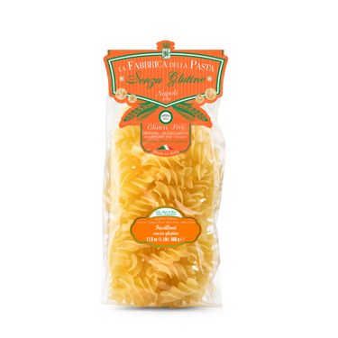 La Fabbrica della Pasta is the first pasta factory in the world to make a bronze-drawn, artisanal pasta of Gragnano, that is completely gluten free. Made with the best rice and corn flour available and local spring water, bronze-drawn and slow-dried at a low temperature, this is true artisanal pasta from Gragnano. It has wonderful flavor and bite, maintaining its firmness after cooking. Use as you would any quality dry pasta. All of La Fabbrica della Pasta's gluten free products are made with special care in a separate, completely gluten-free facility to protect from any cross contamination.