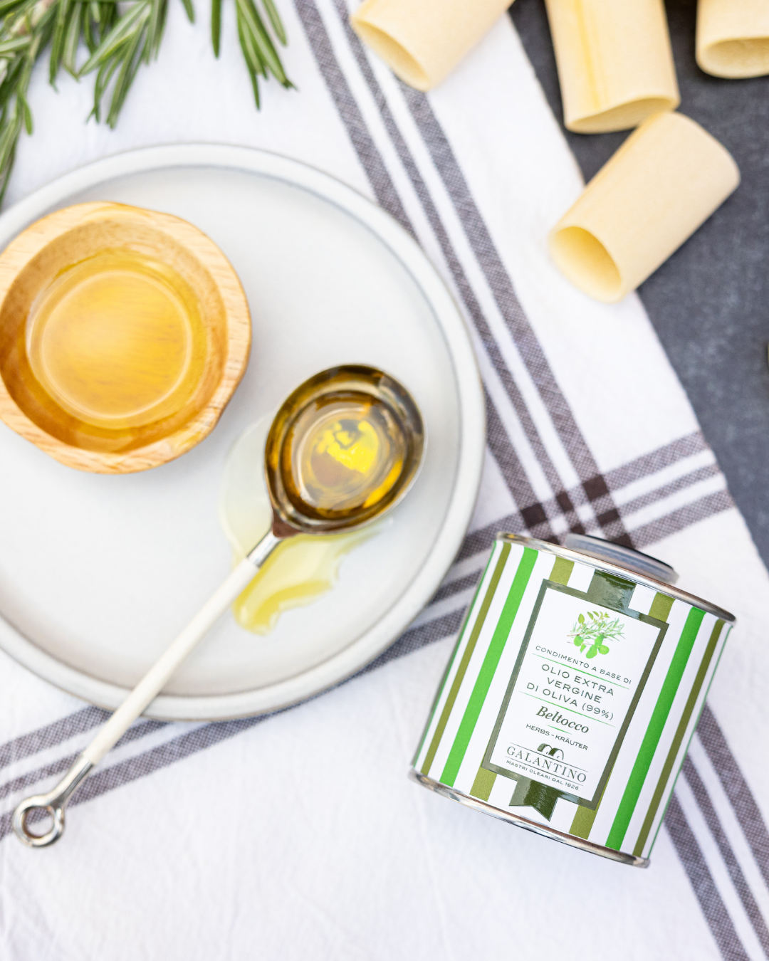 This delicious, aromatic herb fused extra virgin olive oil is part of Galantino’s line of flavored oils. Using an ancient technique revived by Galantino in the 1990s, this fused oil is produced by crushing together the olives and fresh herbs like basil, oregano, thyme, dill, and tarragon, without the use of any added essences. The result is an intense, bright and herbaceous flavor, recommended for seasoning salads, grilled vegetables, meat, fish.