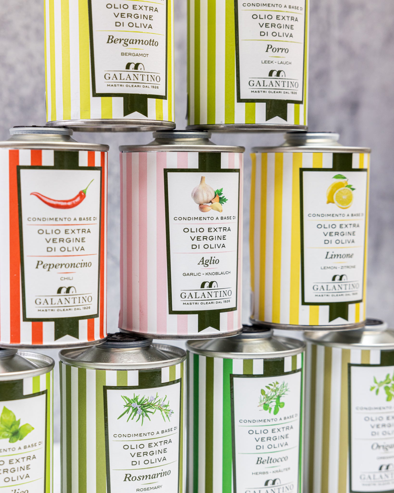 Discover the passion of the Galantino family, masters of extra virgin olive oil since 1926. They only select the best olives from their groves near Bari, in Puglia, a region that produces more olives than anywhere else in the world. Galantino’s Ogliarola and Coratina olives are hand-harvested the traditional way, by shaking the branches of the olive trees so that the olives fall gently onto canvas “hammocks,” then milled with traditional granite millstones. Through cold extraction and strict quality testing, Galantino ensures that their extra virgin olive oil is consistently the best. With artistic packaging and fresh and smooth qualities, Galantino oils have won the most important international awards and accolades.