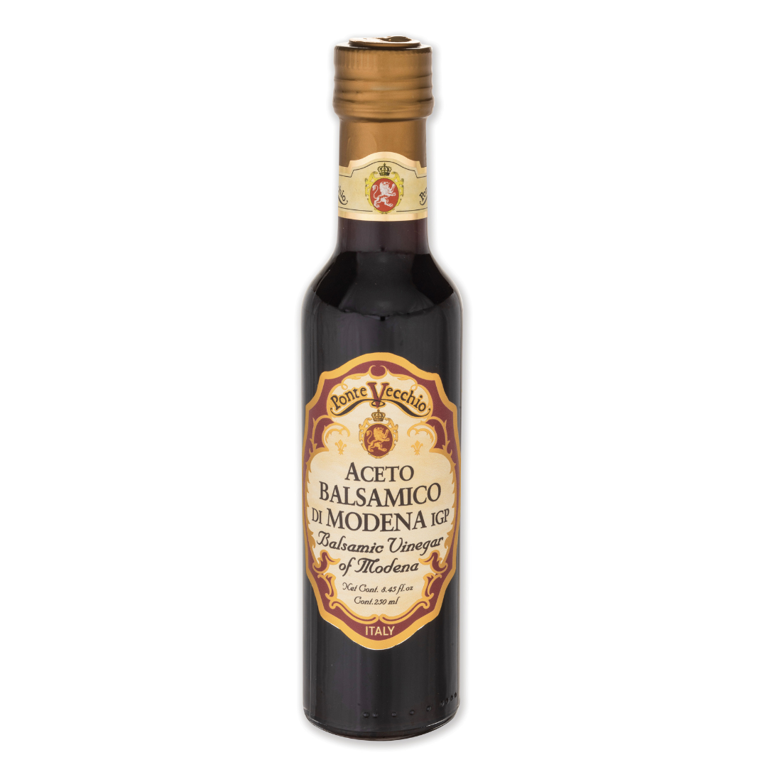 Acetaia Leonardi has been producing balsamic vinegar since the mid-19th century. They source all their grapes from their own vineyards and control every step in producing their balsamic vinegar. Grapes are picked by hand and gently pressed to prevent bitterness and the process of transforming the cooked grape juice, or grape must, into aged vinegar has been passed down from father to son for generations. Ponte Vecchio is an exclusive label by Leonardi for Zia Pia, and offers a wide range of balsamic vinegars, from classic vinegars for everyday use to 25 year aged balsamic vinegar for the most special occasions.