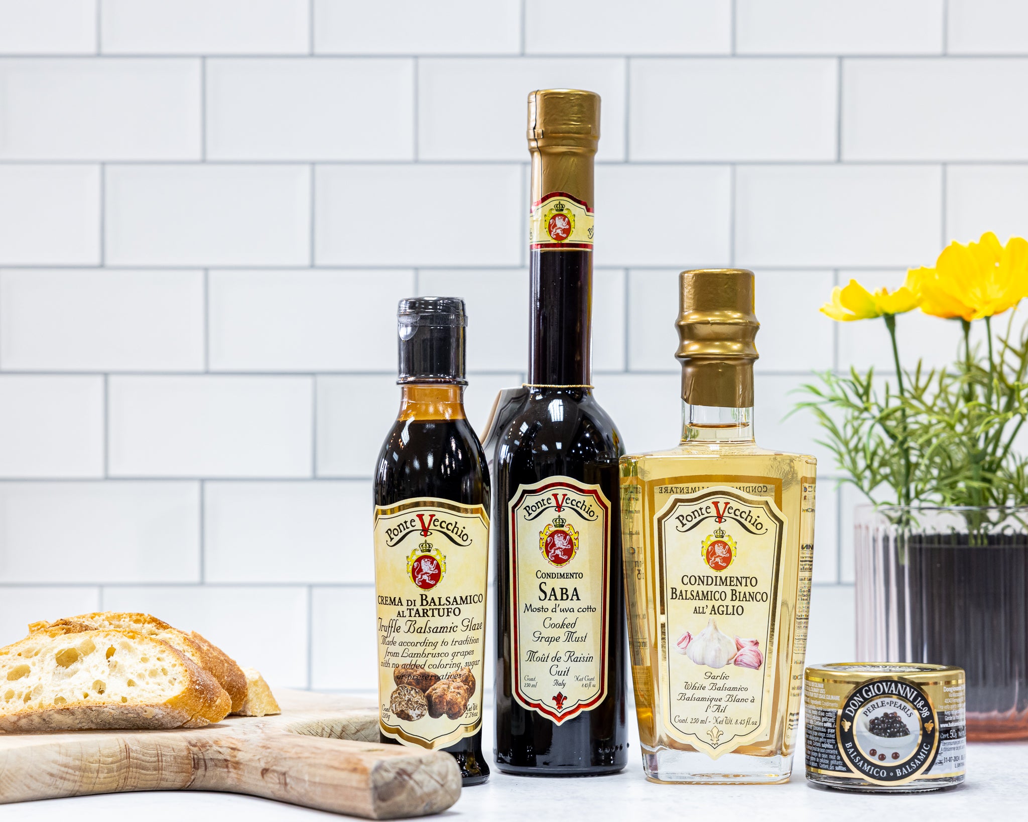 Acetaia Leonardi has been producing balsamic vinegar since the mid-19th century. They source all their grapes from their own vineyards and control every step in producing their balsamic vinegar. Grapes are picked by hand and gently pressed to prevent bitterness and the process of transforming the cooked grape juice, or grape must, into aged vinegar has been passed down from father to son for generations. Ponte Vecchio is an exclusive label by Leonardi for Zia Pia, and offers a wide range of balsamic vinegars, from classic vinegars for everyday use to 25 year aged balsamic vinegar for the most special occasions.
