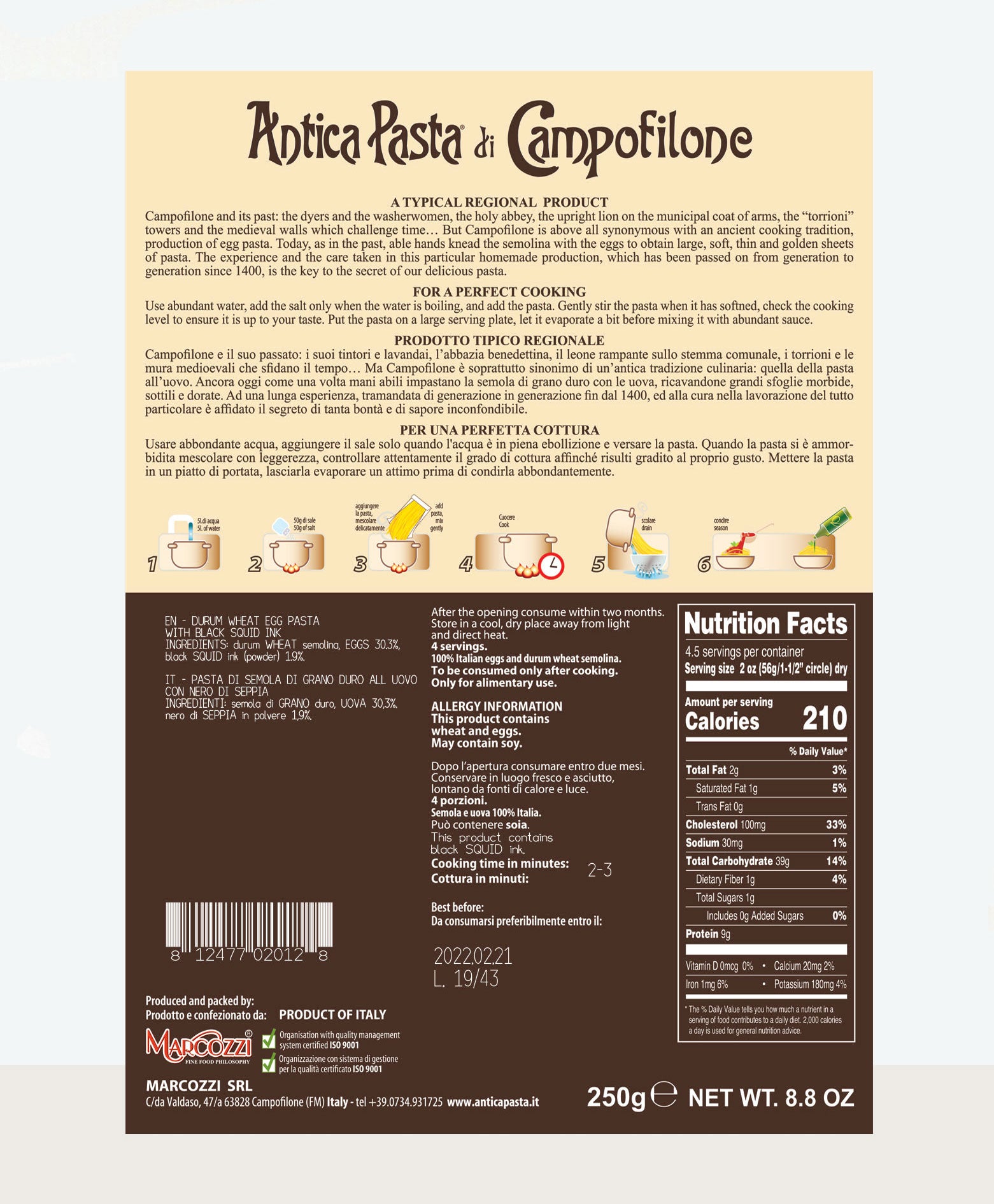 Ingredients: Durum wheat semolina, eggs, black squid ink powder