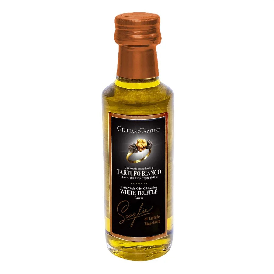 This high quality extra virgin olive oil is infused with white truffle flavor and contains slices of Bianchetto truffle. This sophisticated oil can be added to many different dishes to instantly elevate the flavor. Try it on grilled and roasted meats, with pasta and risotto, grilled and roasted vegetables, or egg dishes and omelettes.