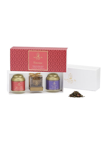 Contains the Appuntamento sul Ponte Vecchio and the Santa Maria del Fiore tea blends with a gold stainless steel tea infuser. La Via del Tè's Firenze collection is a tribute to Florence’s art, food, characters, and legends of the Renaissance.