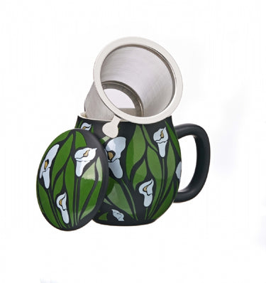 The Camilla Mug is designed for effortless and elegant tea preparation. Crafted from fine porcelain with a velvety matte finish, its rounded shape fits comfortably in your hand. The included stainless steel infuser allows for easy brewing, while the matching lid helps retain heat. Featuring a beautiful Liberty-inspired lily motif, this mug brings a sophisticated touch to your tea ritual. Dishwasher and microwave safe.