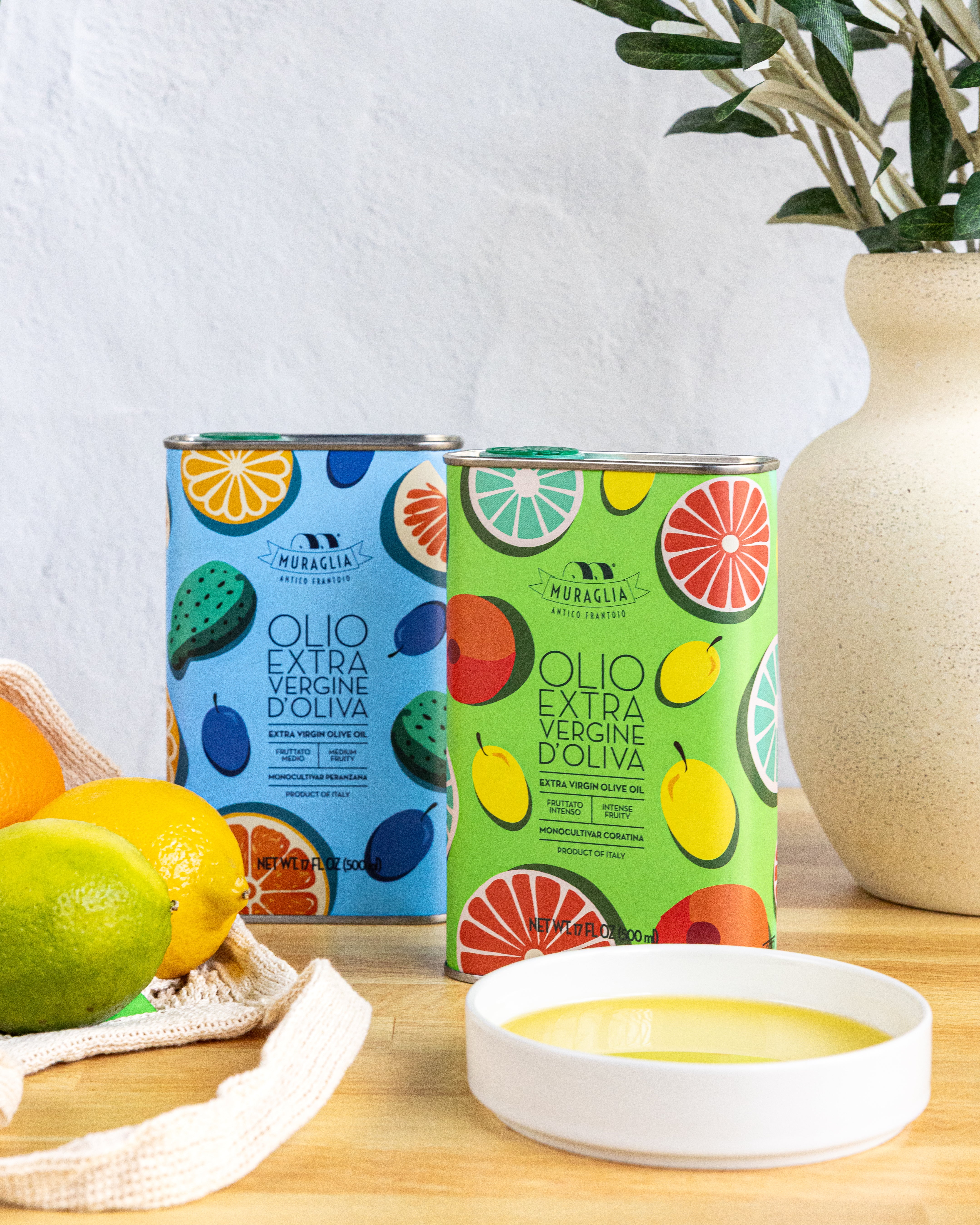 All of Frantoio Muraglia’s extra virgin olive oils are monocultivar, meaning they are made from a single variety of olive, either Peranzana or Coratina olives, both native to the region.