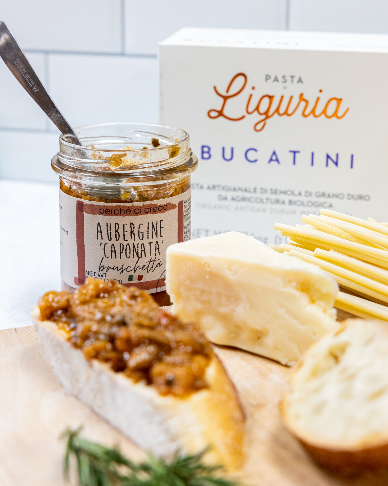 This Sicilian caponata is a flavorful ode to the Southern Italian summer. Perfectly ripe eggplant is slow-cooked in a fresh tomato sauce and extra virgin olive oil until rich and silky-tender, then brightened up with a tangy splash of lemon juice, raisins and orange peel. Try this caponata on a slice of crusty, toasted bread, as a unique pizza topping, or even to dress up your pasta.