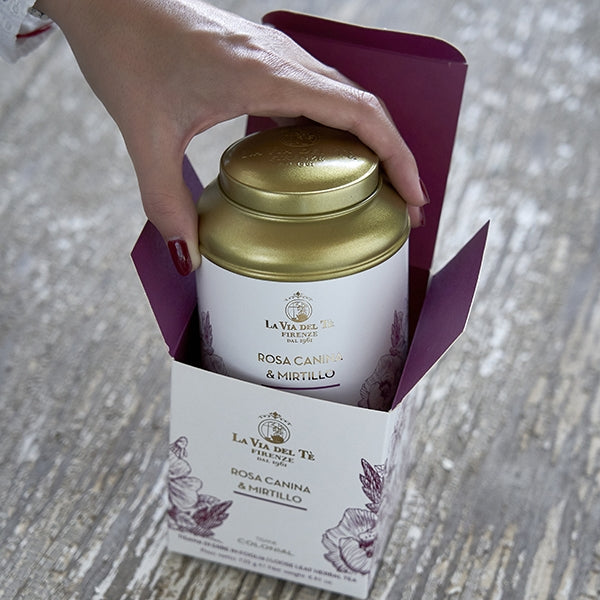 Infused with the vibrant essence of wild berries, this naturally caffeine-free herbal tea blends rosehip, a natural source of vitamin C, with antioxidant-rich blueberries. Its deep pink hue and intense berry aroma give way to a balanced, fruity flavor with a subtle tartness. Beautifully packaged in La Via del Tè’s signature Colonial Collection tin, it makes a thoughtful gift or a delightful addition to any tea lover’s collection.