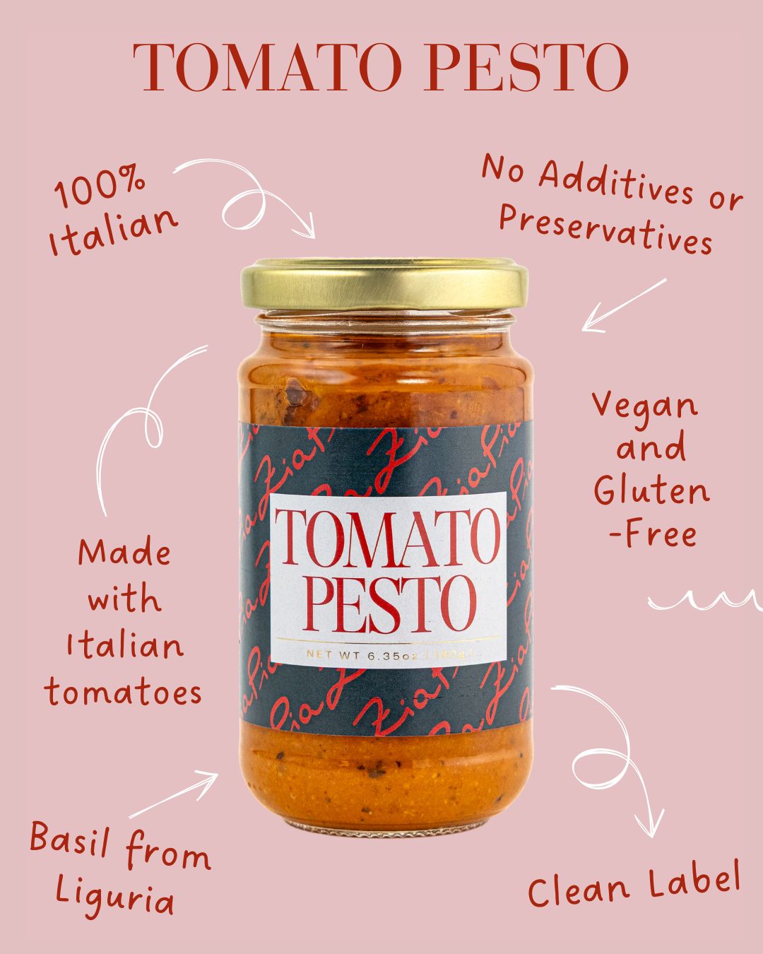 - Tomato Pesto: Captures the freshness of ripe Italian tomatoes and fragrant Ligurian basil, offering a flavorful twist on a beloved classic. Its bold color and rich taste will brighten up any dish.