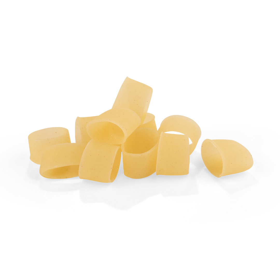 Calamarata Liscia is a tubular pasta shaped into thick rings, popular in southern Italy and typically served with seafood.