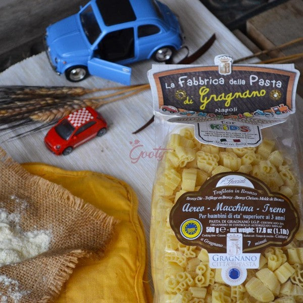 This adorable pasta is shaped like plans and trains, so much fun for kids!