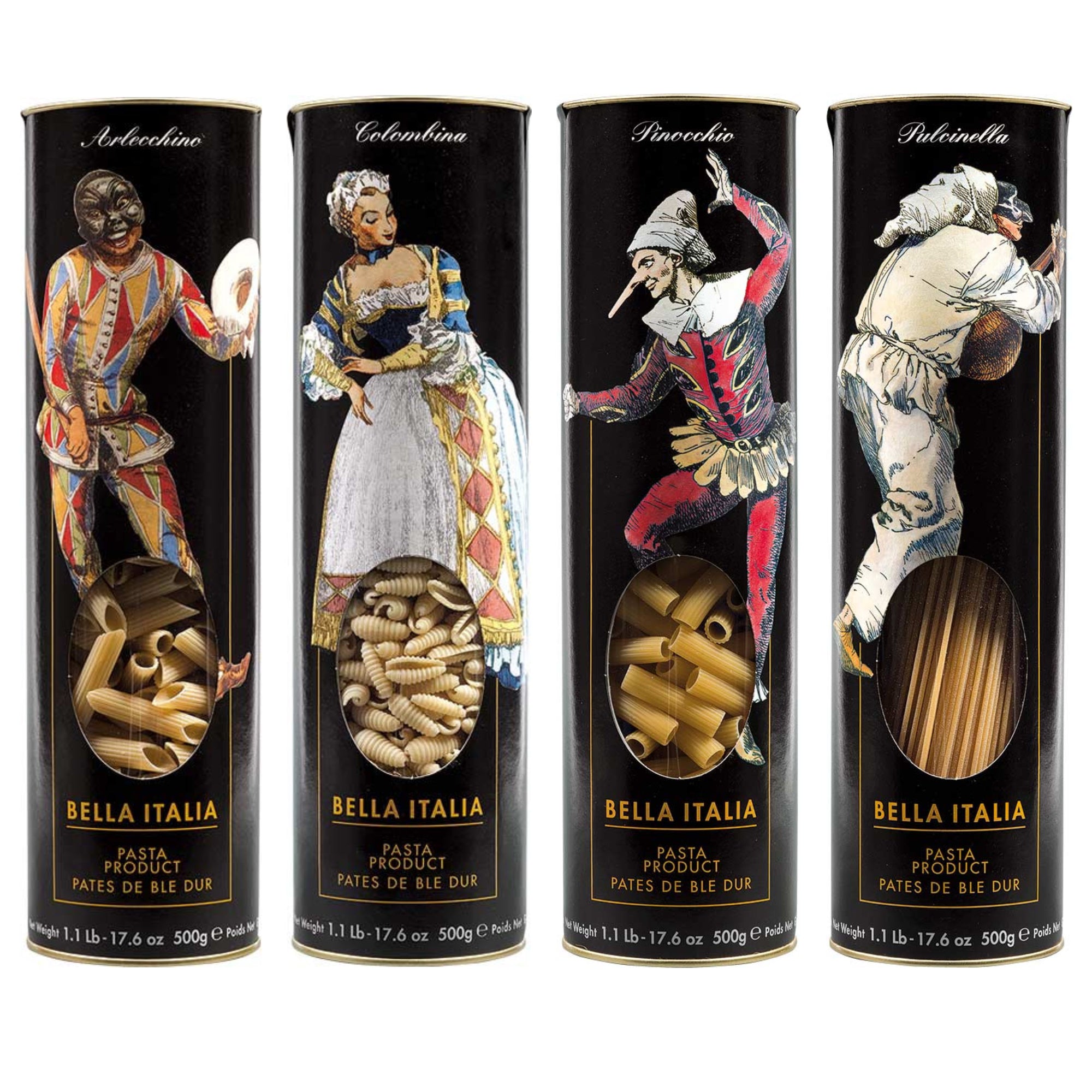Authentic organic dry pasta from Umbria in a beautifully designed package featuring Pulcinella, the famous Neapolitan mascot and a principal character of Italy's commedia dell'arte.